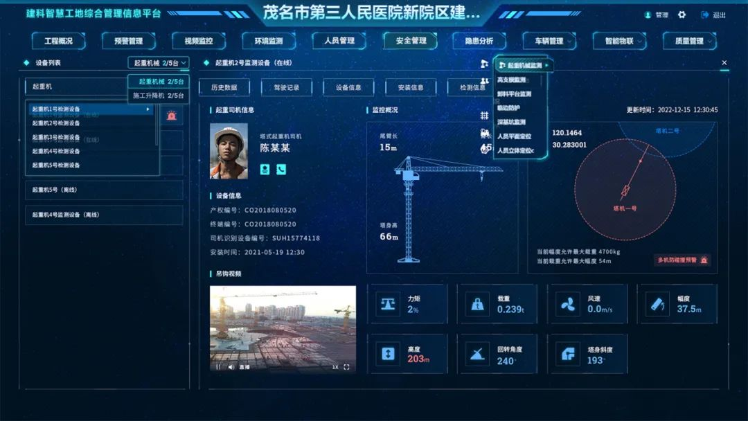 提供数据可视化看板、整体呈现工地各要素的状态和关键数据;远程掌握情况,风险隐患监测防控、进行远程指挥调度。