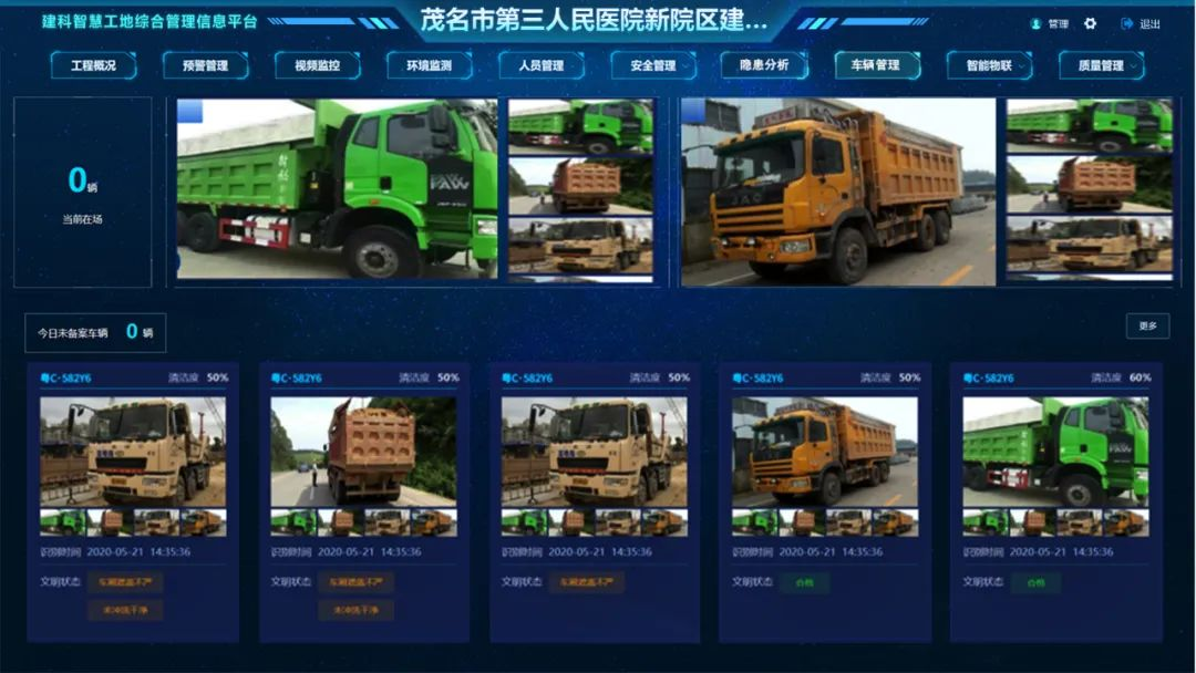 车辆备案、车牌识别、进出场自动抓拍记录,自动识别车辆是否清洗、符合标准。